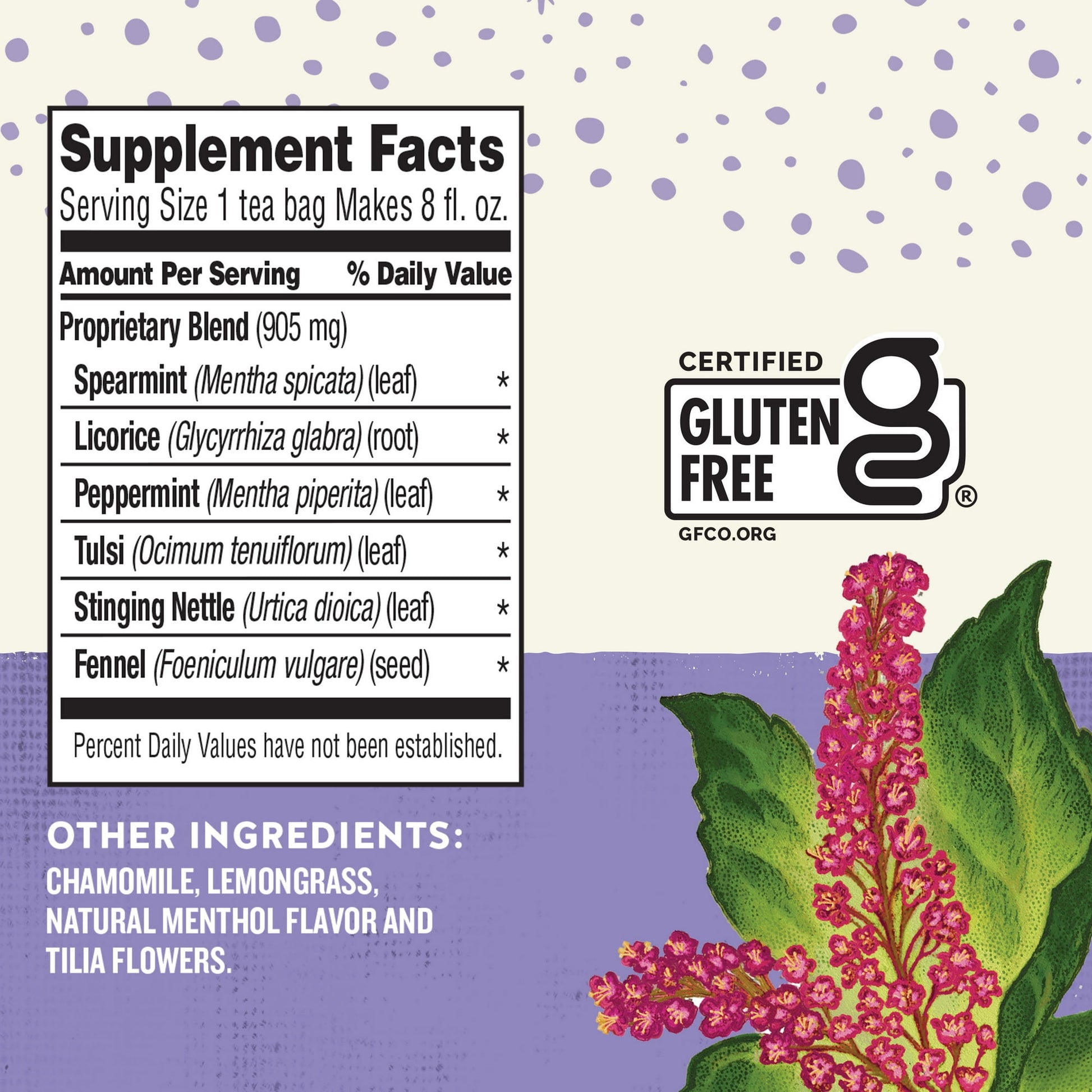 - Made with spearmint, chamomile & lemongrass