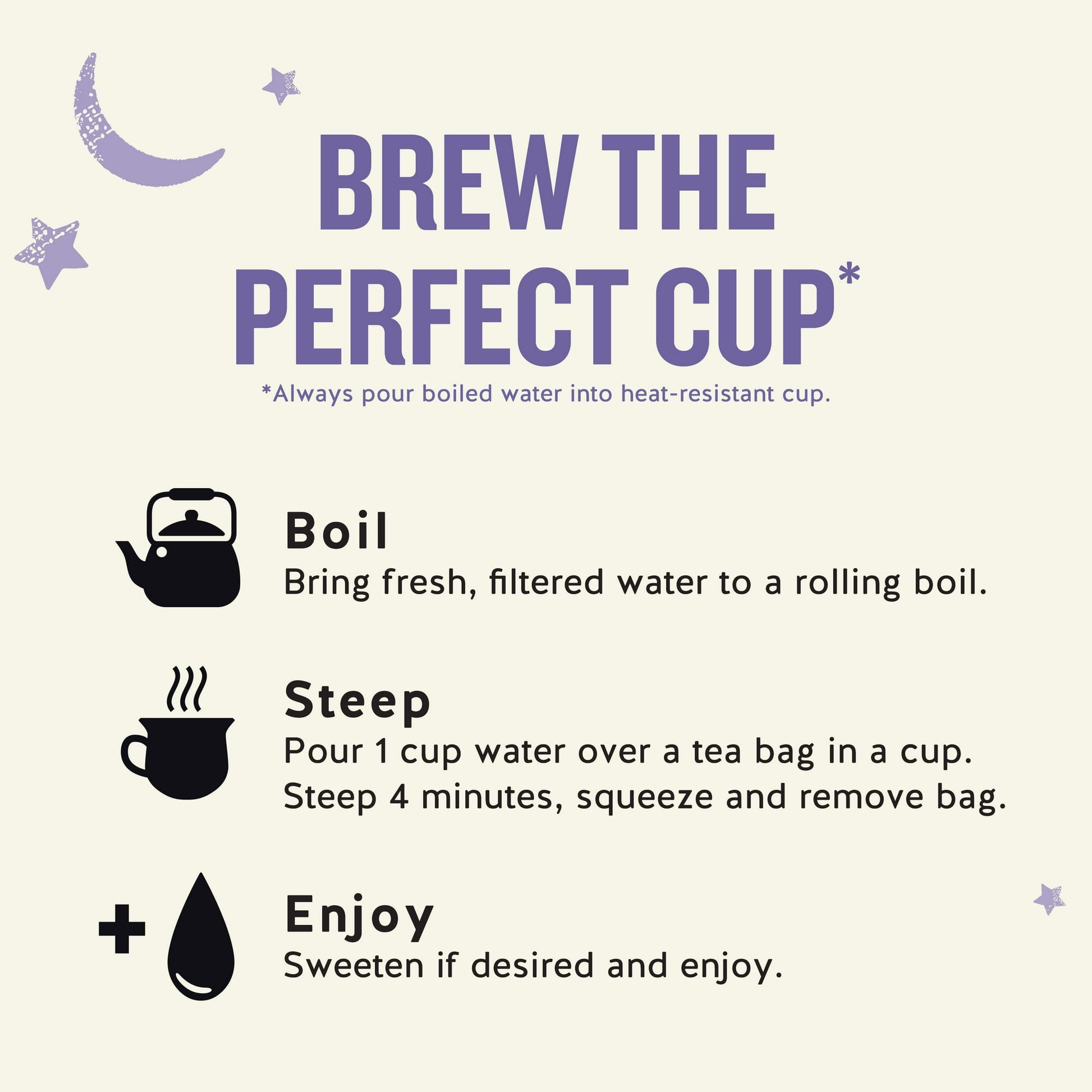 - Steep tea bag in hot water for 4-6 minutes