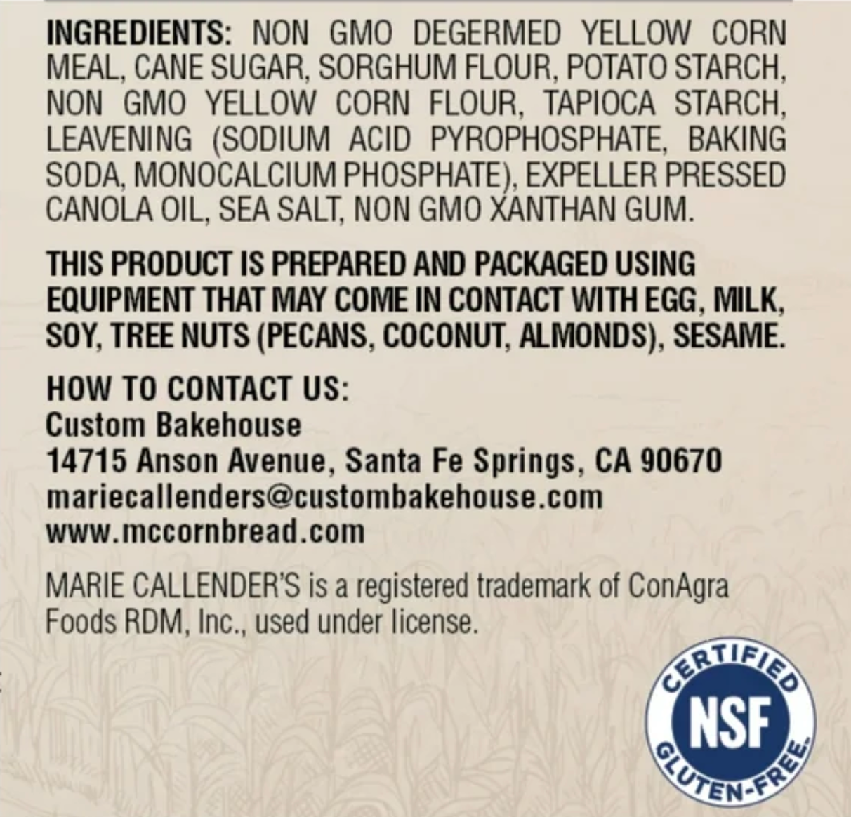 Enjoy the rich, sweet flavor of Marie Callender’s Corn Bread - but without the gluten. Our Gluten-Free Cornbread and Muffin Mix is free from artificial flavors, colors, preservatives, trans-fats and saturated fats. Try this family-favorite side dish or use to make a variety of delicious meals. It's quick and easy to prepare, ready in minutes and delicious every time.