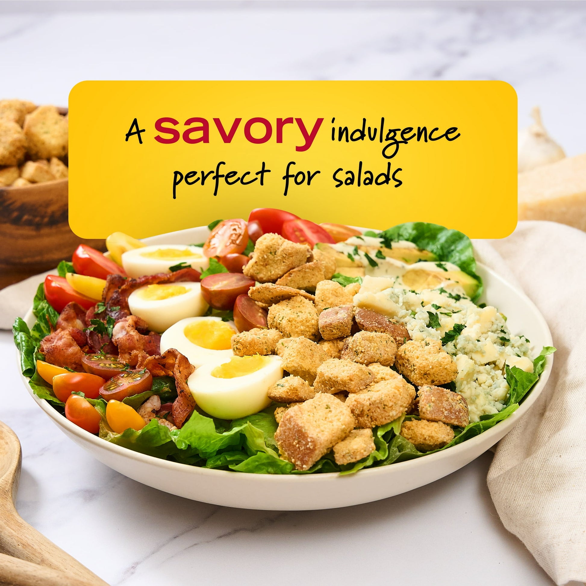 - ADD EXCITEMENT TO SALADS: Elevate your salad to a new level with a robust depth of flavor. Our large cut seasoned croutons pair perfectly with any salad that is in need of an upgrade.