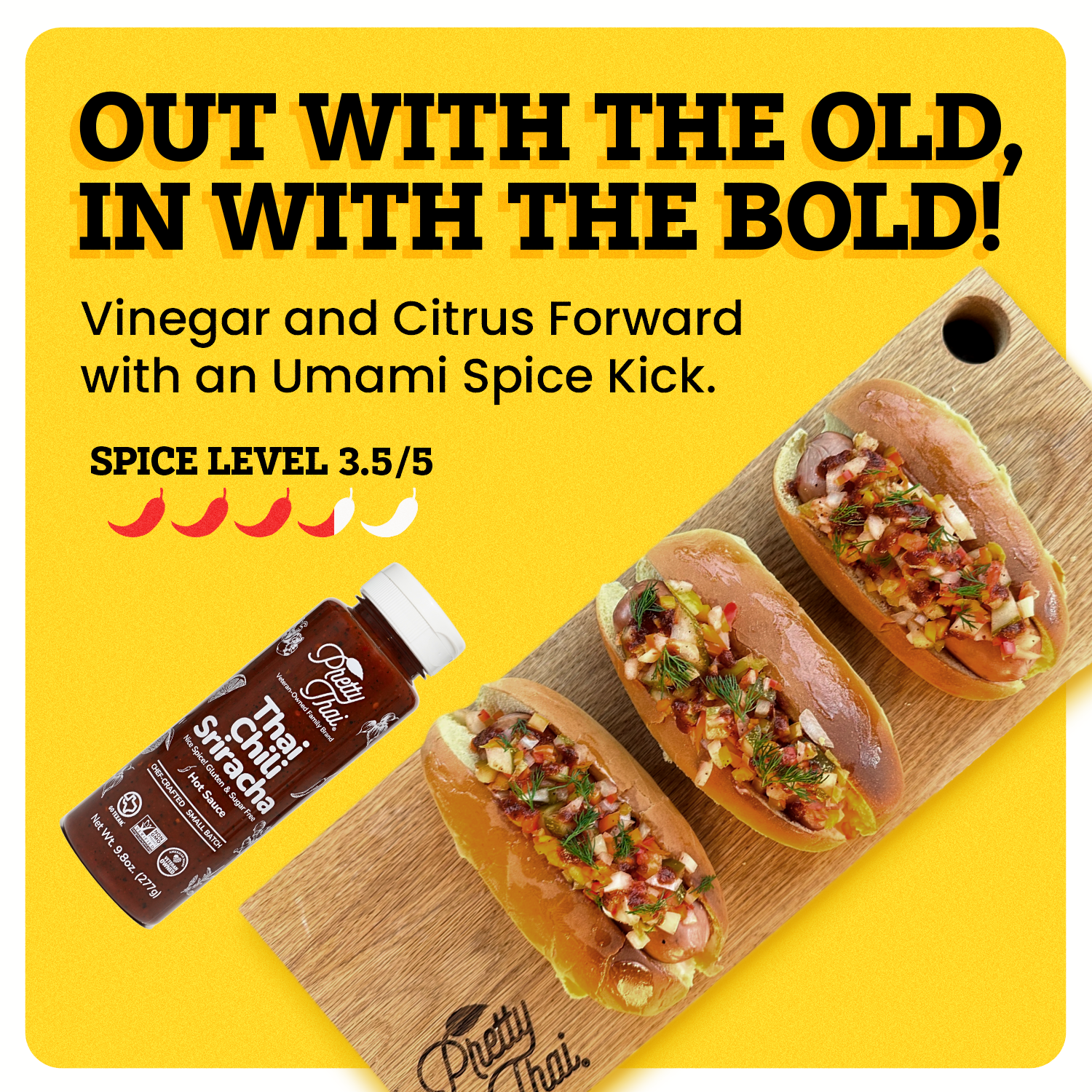 Ignite your plate with Pretty Thai’s Thai Chili Sriracha — a chef-crafted, small-batch hot sauce bursting with tangy yuzu and lime overtones, savory roasted garlic and an umami-rich finish. Keto-friendly, non-GMO, gluten- and sugar-free, it uses red bell pepper for natural sweetness. Spice level 3.5/5 for bold but balanced fire.