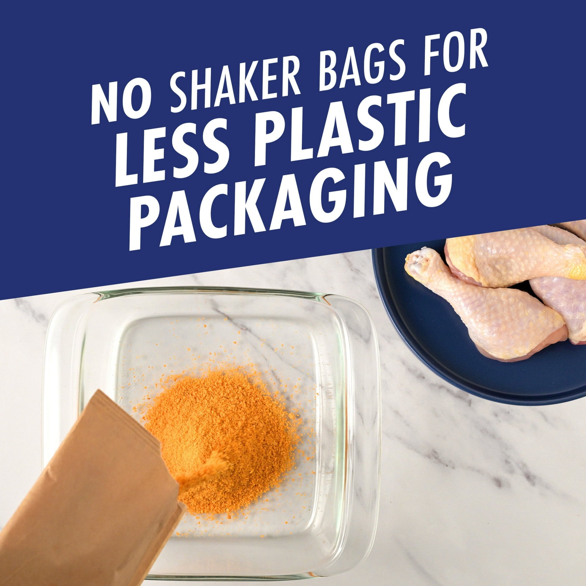 Shake up dinnertime with a family favorite. Shake 'N Bake Crispy Buffalo Seasoned Coating Mix is the start of some amazing home-cooked meals. Featuring a blend of herbs, spices and bread crumbs, our seasoned coating mix creates crispy, zesty and juicy chicken without frying. Easily add a layer of crunch to bone-in or boneless chicken, or try Shake 'N Bake with pork, vegetables and more. To prepare, simply moisten the chicken with water or egg, shake your food in a reusable container filled with Shake 'N Bake to coat it and bake until it's fully cooked. You can also try cooking your protein or veggies in an air fryer or skillet. For even more dinner ideas, check out the back of our box for three delicious recipes, including Buffalo Chicken Wraps, Buffalo Chicken Salad and Buffalo Chicken Wings. With a taste beloved by generations, Shake ’N Bake is a dinner staple that kids love to help make. Each 4.75 ounce box comes with two pouches to make a delicious addition to two meals your entire family will enjoy.