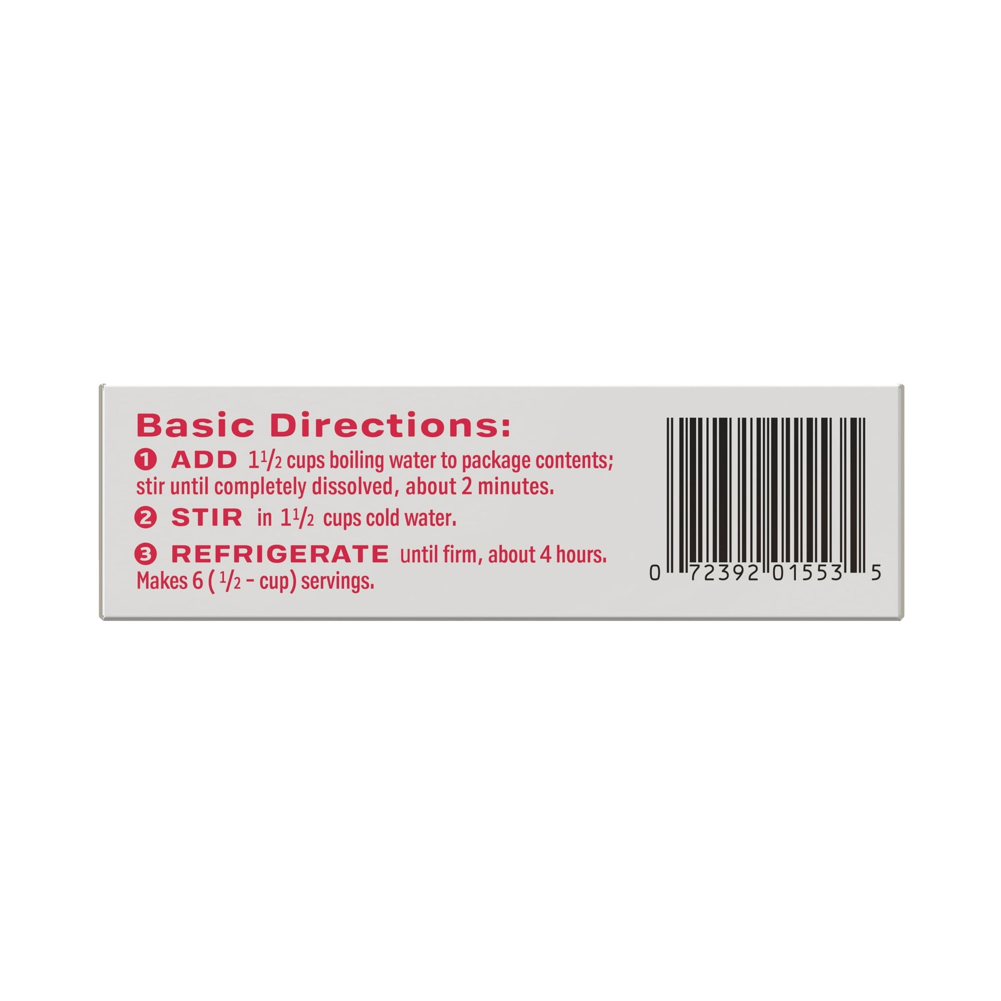 - Add boiling water, stir until completely dissolved, add cold water, refrigerate until firm, and enjoy!