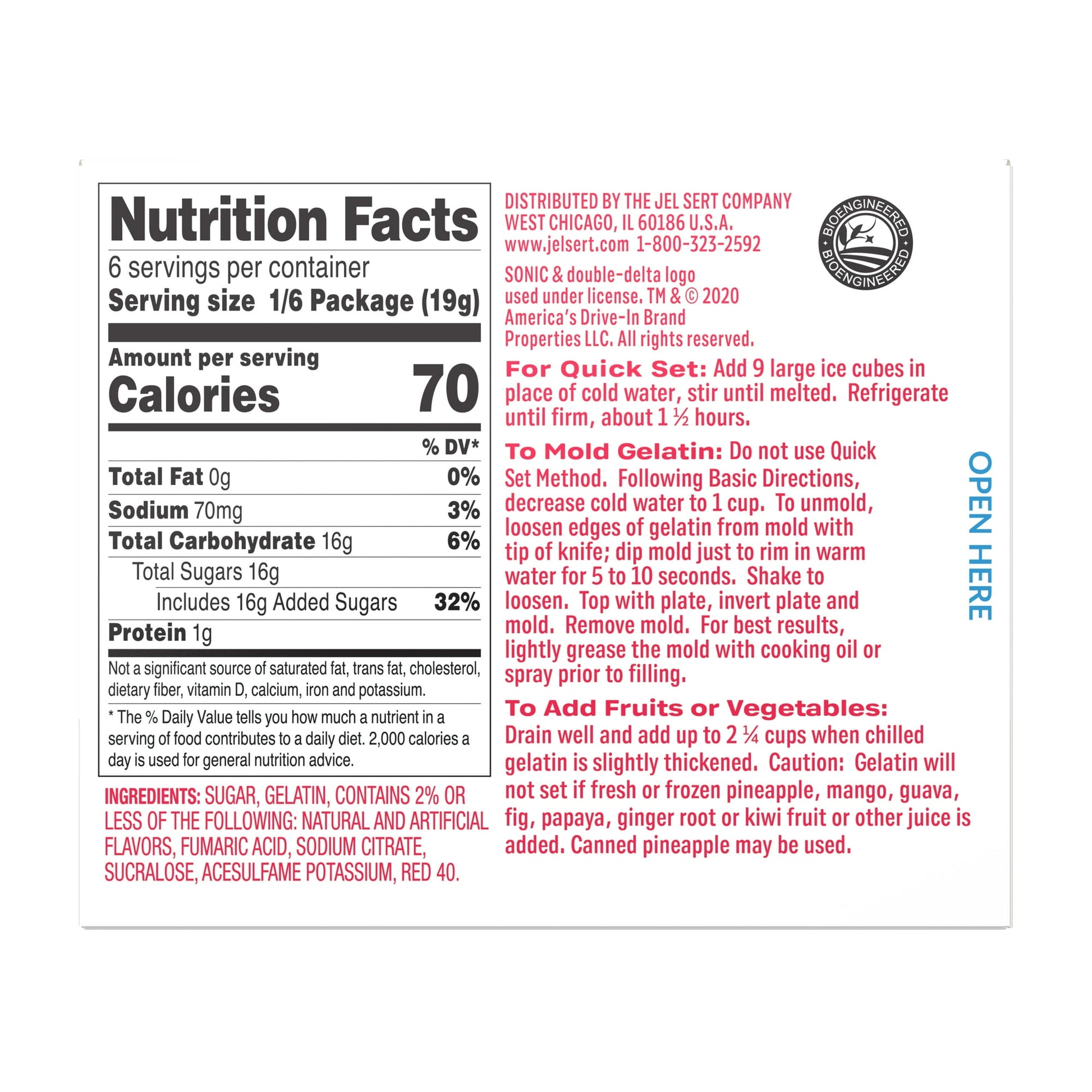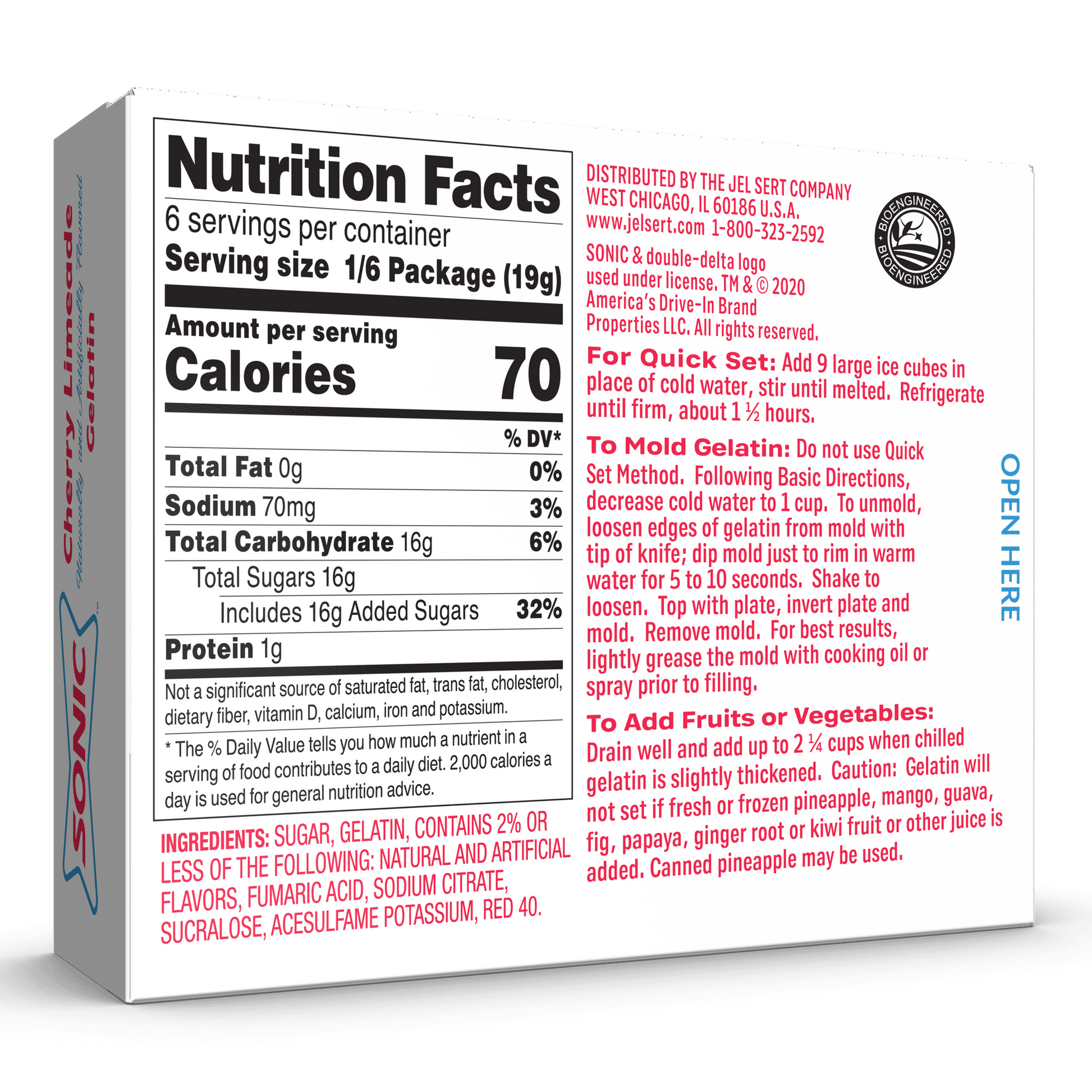 - Sonic Gelatin Mix also available in other Sonic flavors