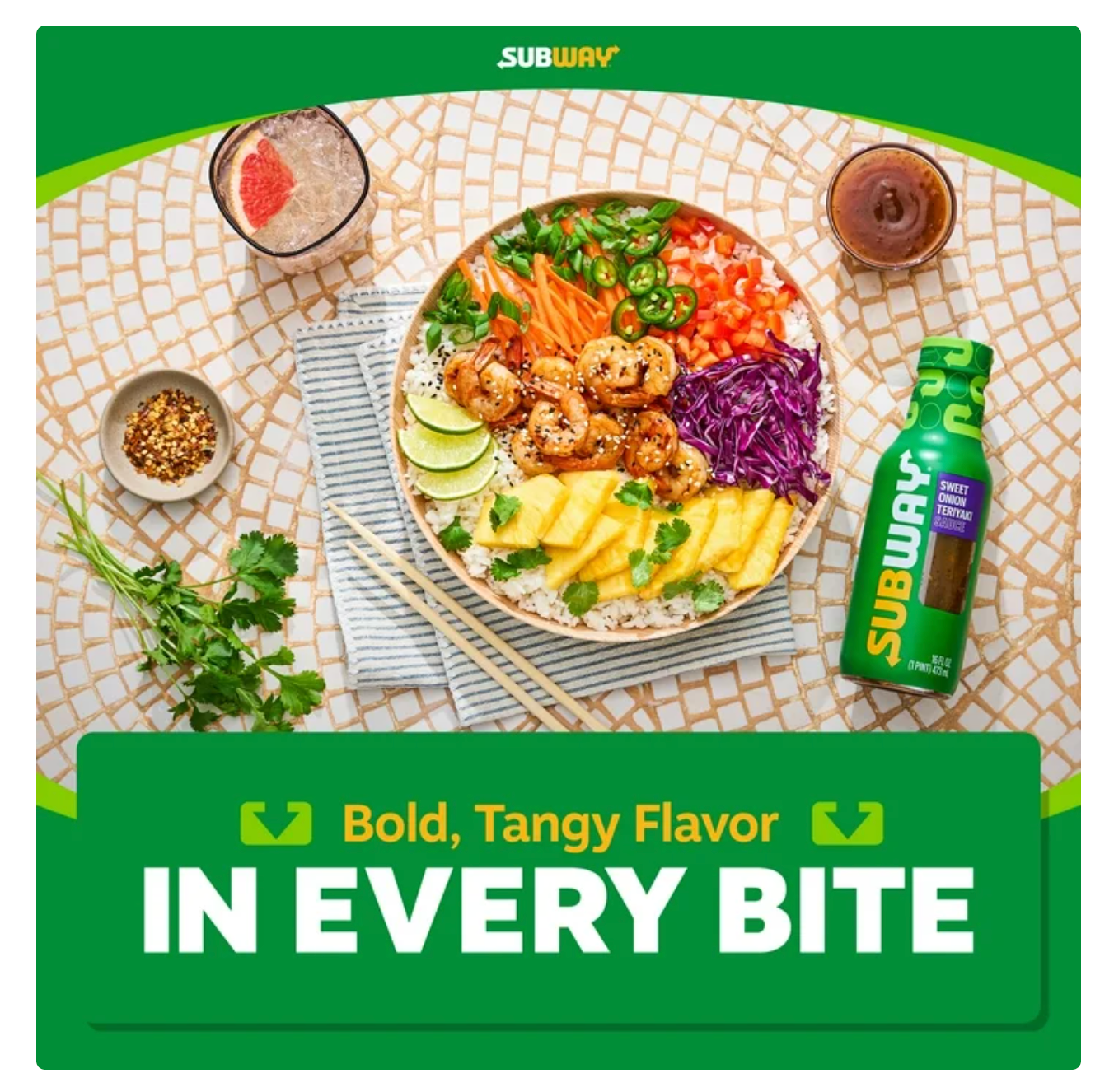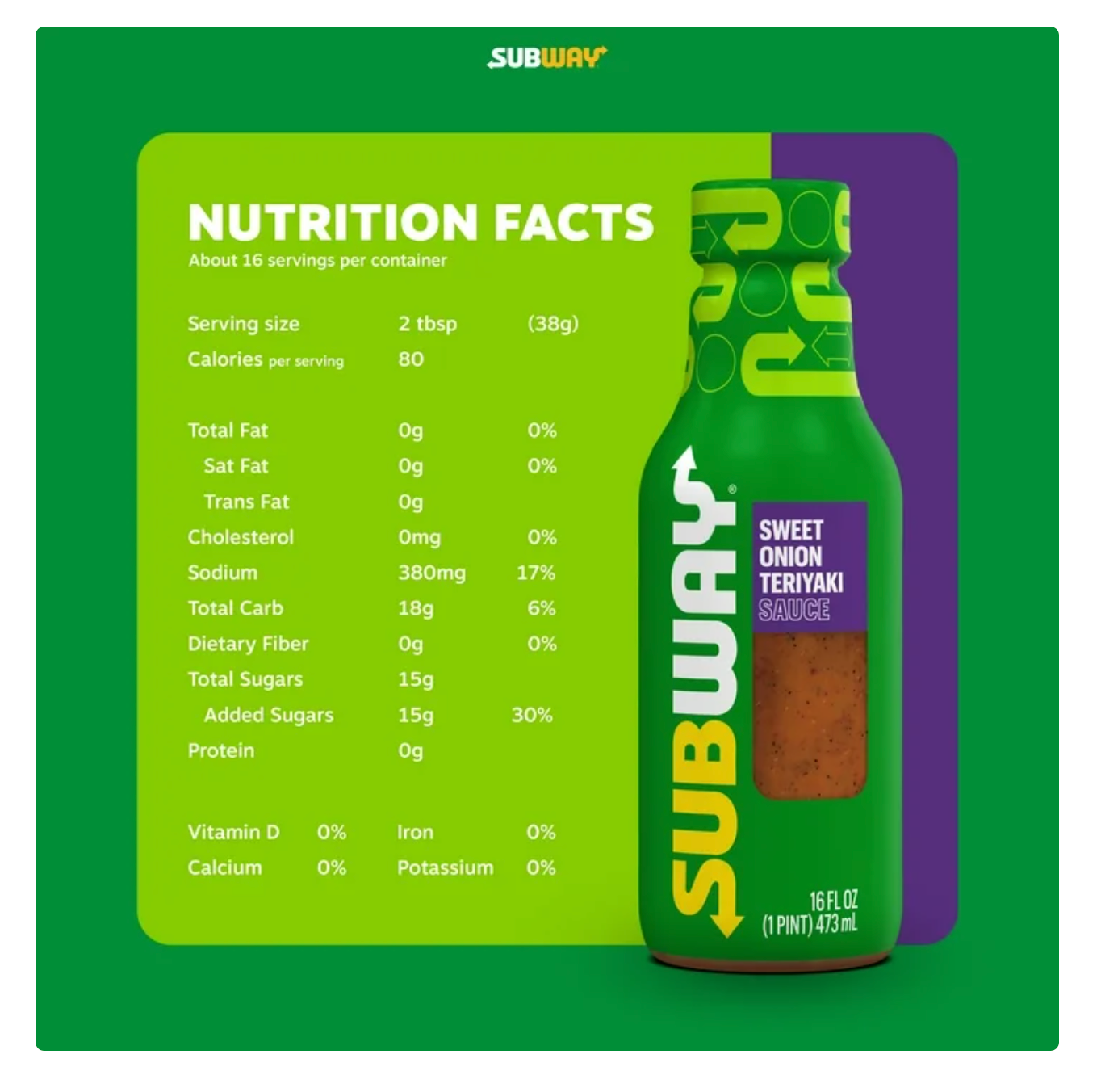 Subway Sweet Onion Teriyaki Sauce brings the iconic flavor of Subway directly to your home. Crafted with ginger, poppyseed, and green onion, this versatile sauce delivers a sweet and savory taste that enhances sandwiches, grilled meats, and vegetables alike. Perfect as a marinade for pork chops, chicken, or steak, it adds bold flavor to everyday meals with minimal effort. Built on Subway’s legacy of quality and flavor since 1965, this sauce makes it easy to enjoy a restaurant-style experience at home. Elevate your favorite dishes, add a touch of gourmet to weeknight dinners, and savor the familiar taste of a Subway classic anytime.
